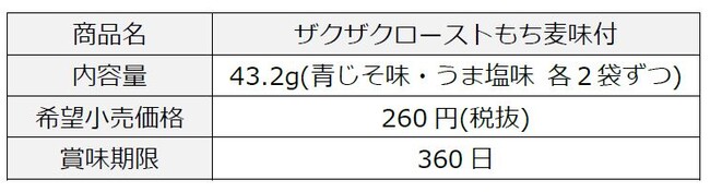 味は青じそ味とうま塩味の2種類をその日の気分に合わせて選べ、小分け×シーズニングタイプなので賞味期限も長く、オフィスやピクニックなど外出先でも使用できます。
