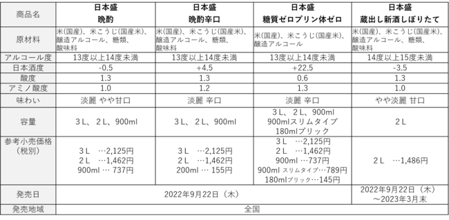 本年も9月から3月までの季節限定商品として販売をいたします。本リニューアルでは、商品特長である「しぼりたて」の視認性を強化し、「鮮度あふれる旨さ」という味わいも新たに表記いたしました。また、2022年7月7日に特許登録の日本盛オリジナル酵母(※5)である「老香(※6)低減酵母」を使用することで、今までと変わらぬ味わいで美味しくお飲みいただける期間が9か月から12か月へと延長し、フードロス削減にも期待ができるようになりました。