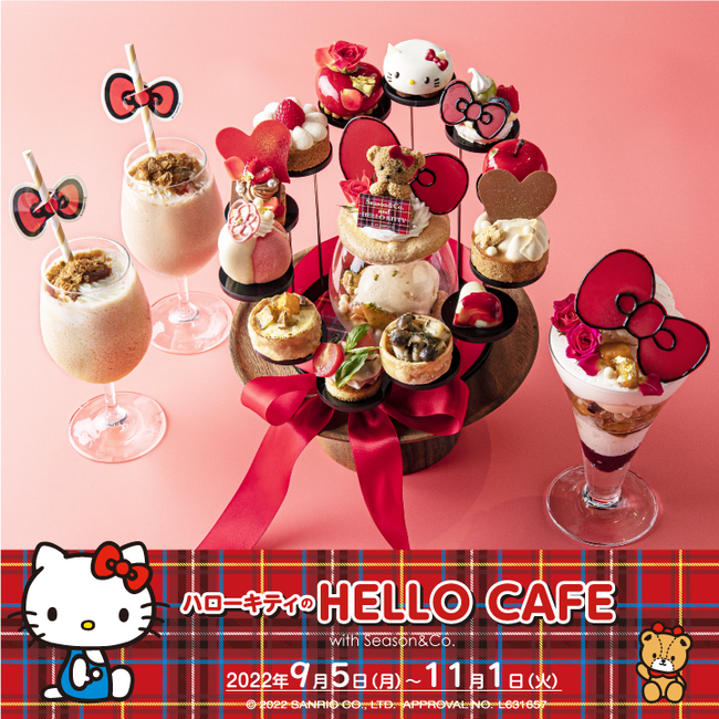 Season & Co.では、「ハローキティ」とコラボレーションした「ハローキティのHELLO CAFE」を上記の期間限定で開催し、ハローキティをイメージしたアフタヌーンティーセット(予約制)やコラボメニューのほか、ノベルティプレゼントやグッズの販売をいたします。