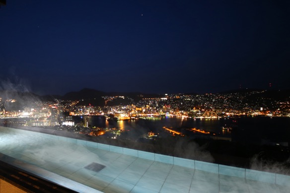 この絶景を眺めることができる、長崎ホテル清風の一番の自慢が、最上階に位置する「展望露天風呂」。
