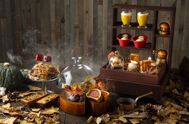 土の香りや落ち葉の香りなど、大地のアロマに包まれながら味わう収穫の秋の美味は、メトロポリタングリル料理長 フィナリー・セメスが炎や煙を巧みに用いた手法でご用意する4種類の肉料理、「パンプキンスープ」や「トリュフマッシュポテト」など5種類のサイドディッシュ、「モンブラン」や「スイートポテト」など秋の人気スイーツ4種類がセットになり、木の温もりを感じさせる特製スタンドでご提供します。ドリンクはコーヒー、紅茶に加え、「バタースコッチアイスラテ」や「ホワイトグレープアイスティー」などをお楽しみいただけます。