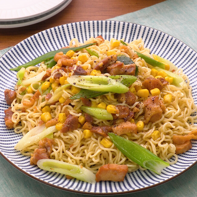 備蓄品で簡単!缶詰で焼きラーメン