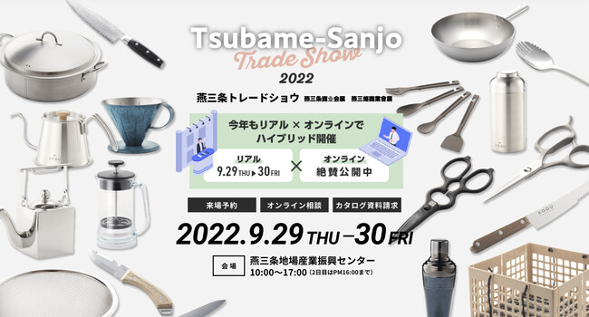 1949年の設立から70年以上に渡り、燕市の商工業の発展とともに事業を展開してきた燕商工会議所は、隣の市である三条市とタッグを組み、今年で開催5回目となる日本海側・最大級の見本市「燕三条トレードショウ」を9/29(木),30(金)に開催する。(主催:燕三条トレードショウ実行委員会(燕商工会議所・三条商工会議所))
