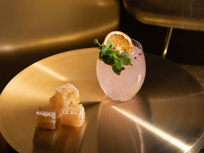 街にはたくさんの人々が行き交い、建物の屋上ではミツバチ達が賑やかに飛び回る。そんな活気あふれる心斎橋をイメージしてバーテンダーが作り上げたカクテルは、ミツバチによって生態系が循環し、SDGs15番「陸の豊かさも守ろう」達成に貢献することを願い、“BEES(ミツバチ)”と“Forest(森)” を組み合わせ、「BEES FOREST(ビーズ フォレスト)」 と名付けました。心斎橋のはちみつ、W大阪特製ラズベリーレモネード、トニックウォーターにラムを加えた、爽やかな微炭酸カクテルです。