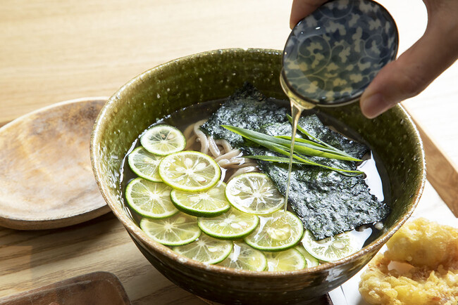 心斎橋のはちみつとすだちのおうどん(1人前) 税込1,680円 (1日限定20食)
