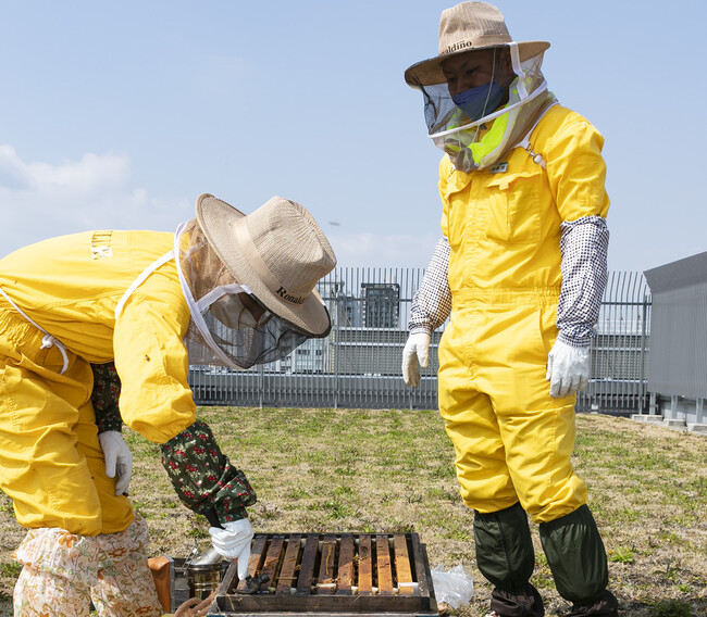 「都市養蜂」とは都心のビルの屋上などを活用しミツバチを飼育し、はちみつを採蜜することです。 都心でミツバチを飼うことは、<生態系の循環>=生き物のつながりを持続できる大事な役割を担います。まさにSDGsの11番「住み続けられるまちづくりを」と15番「陸の豊かさも守ろう」というゴールにもつながります。また都市養蜂を地域に認知してもらうことで、地域に花(緑化)が必要だと認識していただけるチャンスがうまれます。例えば今後はボランティアを募り、大丸心斎橋店の周りから心斎橋の街へ広げる緑化活動を行うなど、植栽化を進めることで地域の美化も目指すことができます。