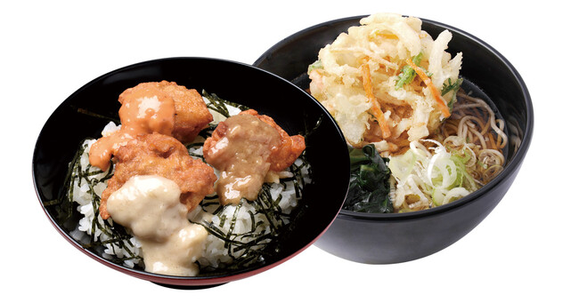 ※「舞茸天と鶏天」は名代箱根そば全店で販売いたします。「炭火焼鶏もも肉ときのこのごまつけせいろ」および「鶏唐揚げ丼セット~3種のだしタルソース添え~」は、取り扱いのない店舗がございます。