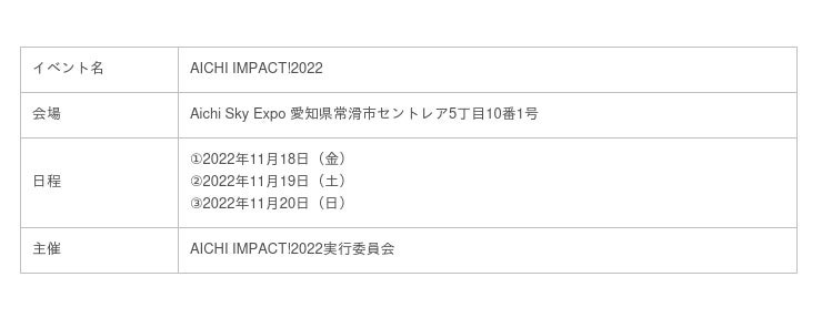AICHI IMPACT!2022実施概要