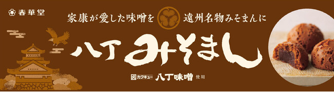 有限会社春華堂(本社:静岡県浜松市、代表取締役社長:山崎貴裕)は、徳川家康公を主人公とした2023年の歴史ドラマの放送が決定したことを受けて「徳川家康公ゆかりの地」の機運を盛り上げていきたいとして、期間限定デザインの「八丁みそまん」を2022年9月1日から新発売いたします。みそまんは家康公ゆかりの地、遠州地域にに古くから伝わる郷土菓子です。皮に江戸時代から同じ製法で天然醸造される、家康公誕生の地である岡崎のカクキューの八丁味噌を練りこみました。職人がじっくりと炊き上げた、旨味ゆたかなこし餡も自慢です。