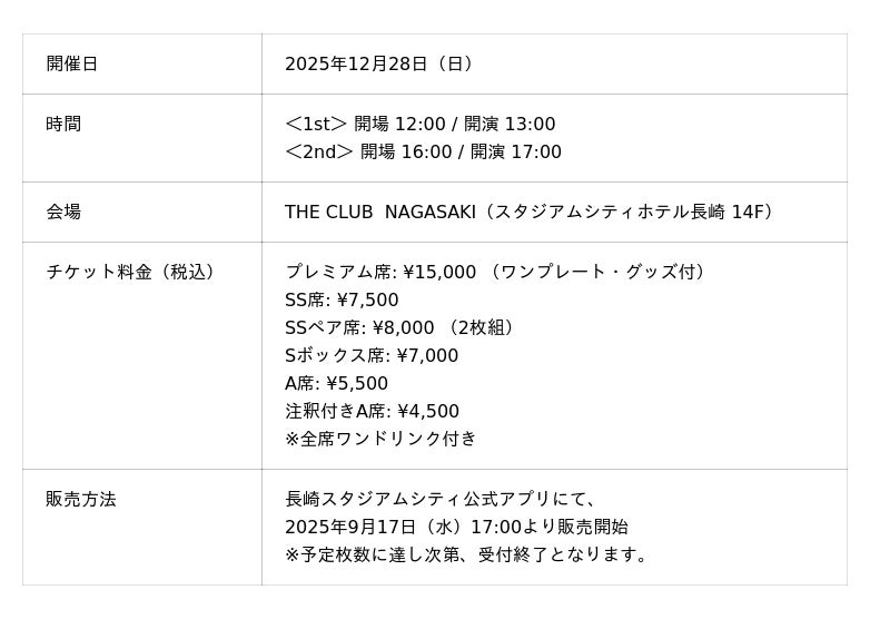 詳細はこちら:https://www.nagasakistadiumcity.com/the_club/schedule/30725/