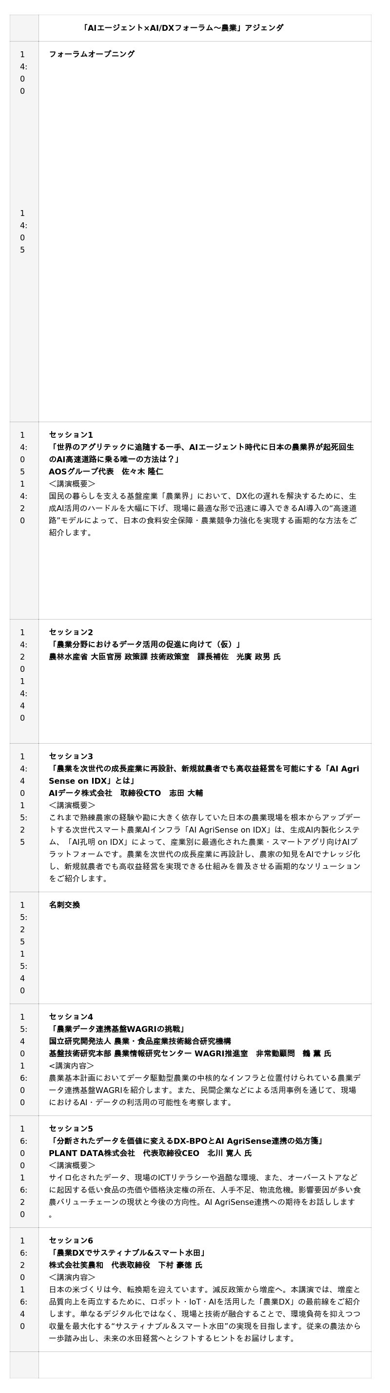 ■「AIエージェント×AI/DXフォーラム~農業~」概要