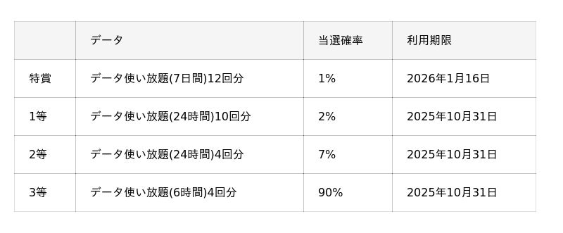抽選でデータが必ず当たるトッピングです。期間中、何度でもチャレンジいただけます。