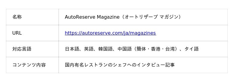 世界中にユーザーを持つ「AutoReserve」は、この課題を解決すべく、日本の素晴らしいお店や料理人の世界的認知度の向上と、レストラン業界の更なる発展に寄与したいという想いから「AutoReserve Magazine」を立ち上げました。