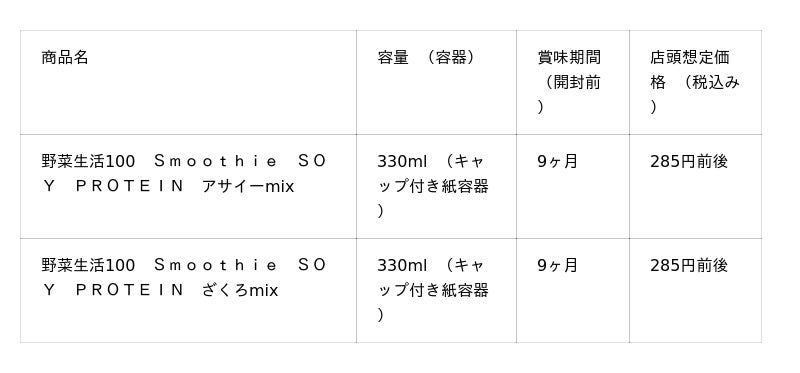 カゴメ株式会社(社長:山口聡、本社:愛知県名古屋市)は、「野菜生活100 Smoothie SOY PROTEIN アサイーmix」「野菜生活100 Smoothie SOY PROTEIN ざくろmix」を2025年9月16日(火)よりEC、ドラッグストアなどで販売を開始します。