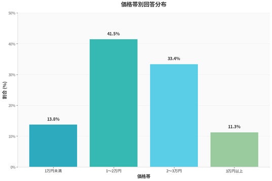 具体的な内訳を見ると、「2~3万円」と答えた人が104名(33.4%)で最も多く、さらに「3万円以上」を選択した人も35名(11.3%)いました。最も多い価格帯は「1~2万円」の129名(41.5%)でしたが、高単価への許容度も十分に高いことが分かります。
