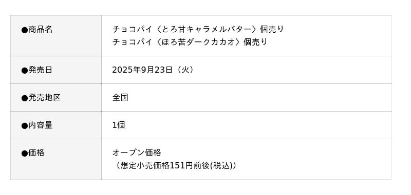 また9月23日(火)に「チョコパイ〈とろ甘キャラメルバター〉個売り」「チョコパイ〈ほろ苦ダークカカオ〉個売り」を発売します。仕事や家事の合間に、癒やしのリラックスタイムに誘うスイートなチョコパイと、ゆっくりリフレッシュできるビターなチョコパイを開発しました。その日の気分に合わせて、スイート&ビターなチョコパイをお楽しみください。