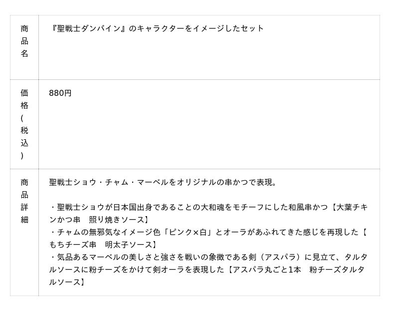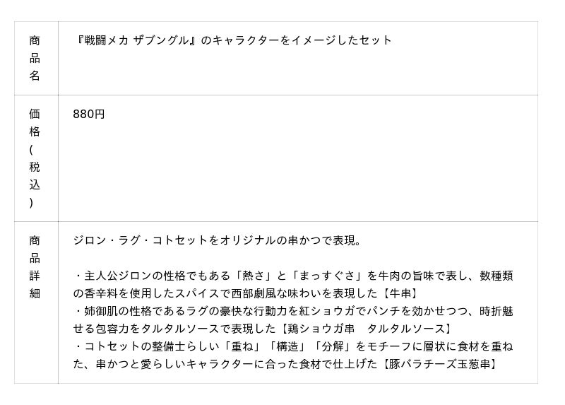 - 『聖戦士ダンバイン』 『戦闘メカ ザブングル』コラボ限定 新作串かつを堪能できる3セットが登場!