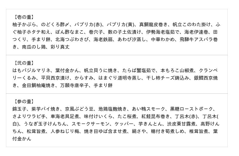 バラエティに富んだラインナップで新年を彩る華やかなおせち