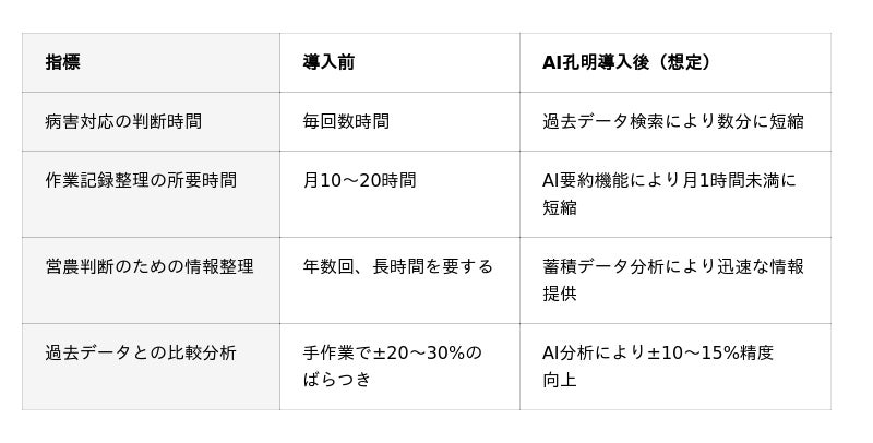 こうした課題に対し、AI孔明は蓄積されたデータに基づく「データ駆動型営農支援」という新たなアプローチを提供します。