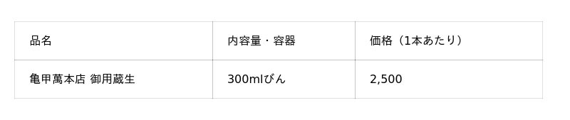 現在、D2C限定商品として、「亀甲萬本店」シリーズのしょうゆ3品と、ぽんず醤油、醤油もろみドレッシング、「BLENDER’S PRIDE」シリーズのだしつゆと白だし、だししょうゆ、「亀甲萬本店 御用蔵」を販売しています。また万上シリーズとして流山白味淋、流山本直しを販売しています。