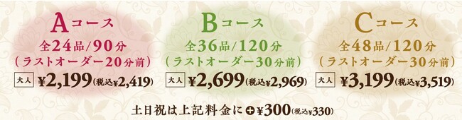 自家製小籠包などの点心類や揚げ物、麺・飯、デザートまで約50種類のこだわりのお料理を食べ放題コース、セットメニュー、アラカルトでご用意。また、ご来店のすべてのお客さまに厳選した本格中国茶を提供いたします。