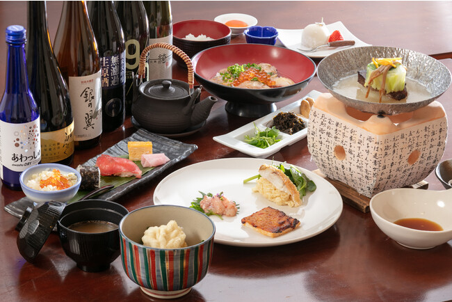 2日目の夕食は本ツアーの目玉、前菜からデザートに至るまで全てのお料理にお米を使用したオリジナルの「米フルコース(秋)」です。「菊乃井」の常務取締役でもある堀知佐子氏がメニュー監修を手がけ、柏崎市の割烹料亭「ささ川」の店主・笹川隆司氏がアレンジを加えました。お米はもちろんのこと、海鮮や野菜も地元自慢の産品を贅沢に使用。柏崎の美味しいお酒とペアリングして召し上がっていただきます。ここでしか味わえないお米の可能性をぜひご堪能ください。