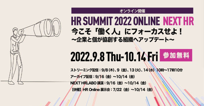 株式会社ユーキャン(東京都新宿区、 代表取締役社長:品川泰一)は、 9月8日(木)~10月14日(金)に開催される、 HRサミット2022オンラインにて、 講演およびオンラインのブース出展をいたします。