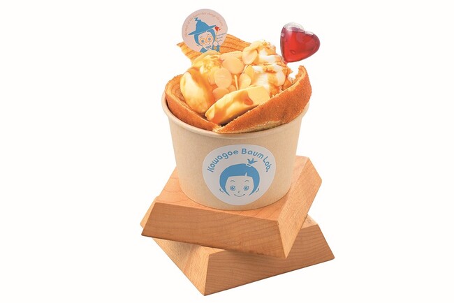 1789年創業の醤油蔵元「金笛 笛木醤油」プロデュースの同店では、川越散策をしながら食べ歩きができるカップ入りバウムクーヘンが人気です。埼玉県比企町の鈴木農場の卵を使用し、ふわふわとした食感が特徴のバウムクーヘンをそぎ切りにし、甘いキャラメルに塩バターのアクセントが効いたソースをかけ盛り付けました。