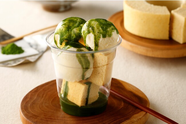 バウムクーヘン専用AIオーブン「THEO(テオ)」で焼き上げたバウムクーヘンとなめらかなジェラートを合わせ、点てたての抹茶をかけて仕上げました。