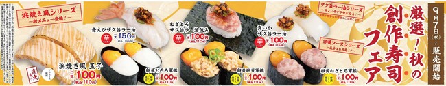 2022年9月14日(水)に改定する定番メニューの中から、厳選した商品をお届けする「厳選! 秋の創作寿司フェア」を2022年9月7日(水)より開催します。