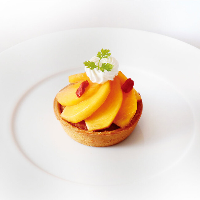 さっくりとしたタルト生地に紅茶のクリームとフレッシュの柿を合わせたタルトです。