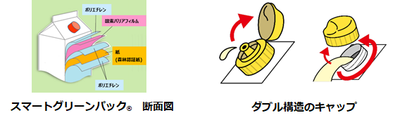 ※1 いずれも当社計算。従来のプラスチック製の同容量帯容器と比較した場合。