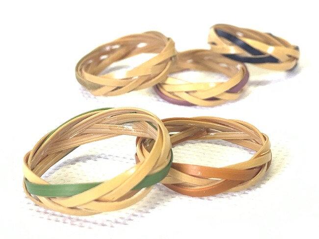 竹の産地である京都で60年、伝統的に建仁寺垣などを作り続ける工房の職人の手で作った竹ひごと、ジャイアントパンダたちが実際に食べ残した竹(竹ひご状に加工したもの)、京都産の竹を組み合わせ、オリジナルの指輪作りを体験いただきます。
