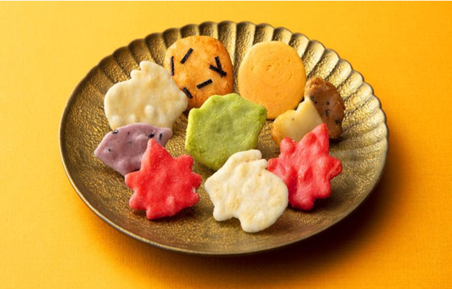 うさぎのおせんべいや色あざやかな紅葉、秋の味覚でもある松茸など秋の風情を感じるふきよせ。紅葉やイチョウの葉があしらわれたパッケージはちょっとしたプレゼントにもオススメ。