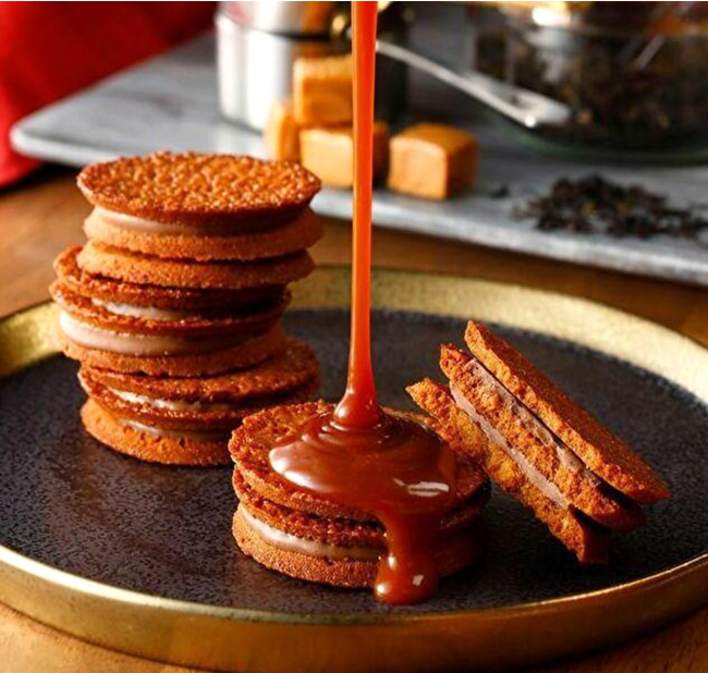 キャラメル味のクッキーと、紅茶の茶葉入りのキャラメル・チョコレートが入った5層仕立てのサクサク食感が特徴の楽しいクッキー。
