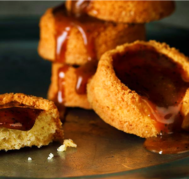 バターが香るサクサクのガレットの中に、紅茶の茶葉を隠し味に加えてコトコト煮詰めたキャラメルを流し込み、丁寧に仕上げたガレット。まるでキャラメル鍋のような形のガレットは、キャラメルオバケ自慢の逸品。