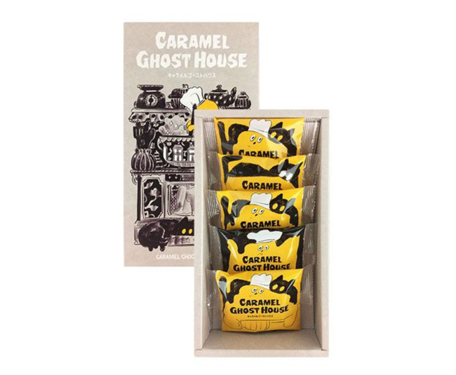 キャラメルが大好物なオバケが作り出す、紅茶をかくし味にした自慢のキャラメルスイーツを販売するキャラメルゴーストハウスが期間限定で大丸福岡天神店に登場します。キャラメルオバケと黒猫のメルちゃんが描かれたパッケージに思わず目を惹かれます。