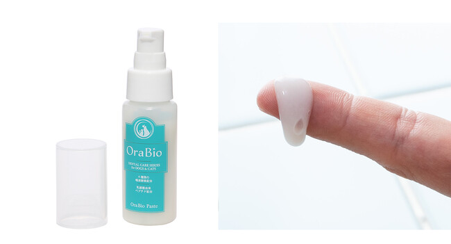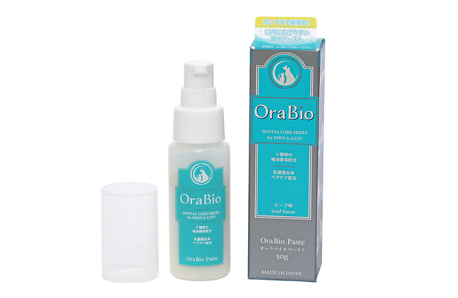<特徴・詳細> 『オーラバイオペースト』は100%食品使用成分を採用し、3つの機能で口腔内の悪玉菌にアプローチする『とどめる』『落とす』『まもる』と3つの特徴で、愛犬愛猫のお口を健康に保ちます。