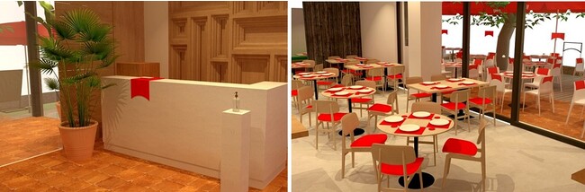 記念すべき初のカフェコラボを組むのは、自由な発想が創り出す新体験の美味しさと上質な空間で人気を誇る無国籍料理の名店「キハチ 青山本店」。青山通りから絵画館までの銀杏の木々が連なる美しいロケーションを借景に、カンペールの世界観、そしてスペイン伝統の料理をキハチ流にアレンジした特別なメニューと共にスペシャルなひとときをお過ごしいただけます。「Cafe de Camper」期間中は、キハチ 青山本店の1階フロアがカンペール仕様に変わります。アクセントに鮮やかなレッドをプラスし、地中海リゾートの雰囲気とカンペールのポジティブなスピリットを表現。