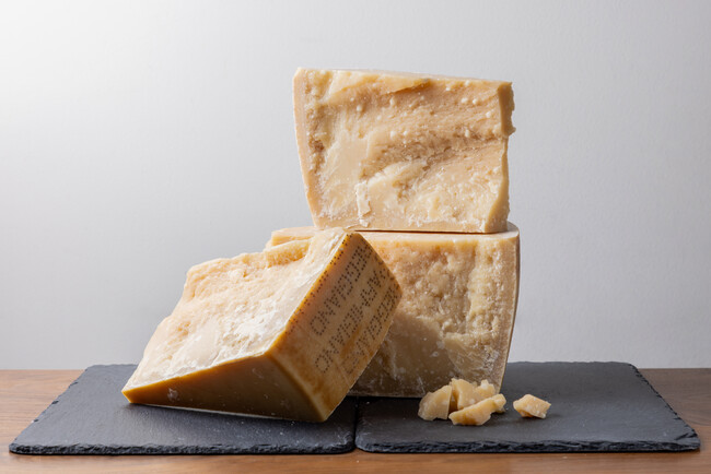 LAMMASでも人気のあるパルミジャーノ・レッジャーノ(写真)やペコリーノ・ロマーノ、イタリア直送のフレッシュチーズのモッツァレラ・ディ・ブーファラ・カンパーナ、マスカルポーネ アルティザンなどを催事期間中にご購入いただけます。ぜひ期間中にご来場ください。
