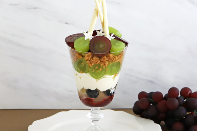 シャインマスカットとピオーネのレアチーズケーキ風パフェ