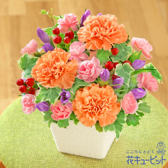 NO.1は、あたたかみのあるオレンジのカーネーションを中心に仕上げた、敬老の日限定のアレンジメントです。ふんわりと丸いフォルムの可愛らしい花々が、おじいちゃん・おばあちゃんの心を癒してくれます。