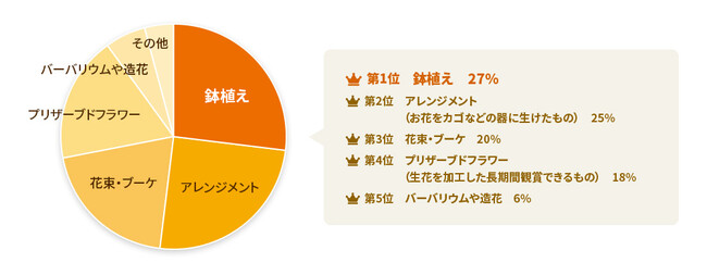 ・「敬老の日」にお花をもらうなら、1位の鉢植えと2位のアレンジメントが僅差で人気、続いて花束。