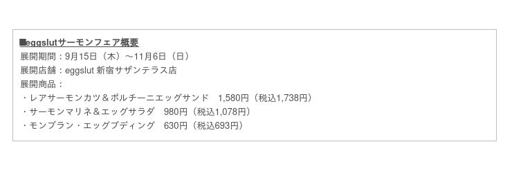 株式会社ベイクルーズ(本社: 東京都渋谷区、取締役CEO: 杉村 茂)が運営する「eggslut(エッグスラット)」は、秋の味覚「鮭」のレアカツを大胆に使用したプレミアムエッグサンド他、秋の新商品3種を2022年9月15日(木)より期間限定発売します。