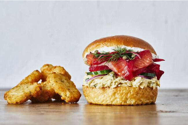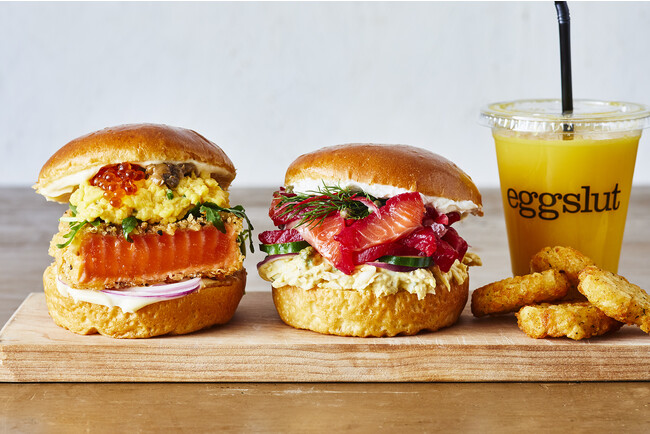 その他、熟成サーモンマリネにビーツの彩りをプラスしたアメリカの定番料理『サーモン・グラブラックス』にeggslutのエッグサラダを合わせた、あっさりテイストの「サーモンマリネ&エッグサラダ」も同時展開します。