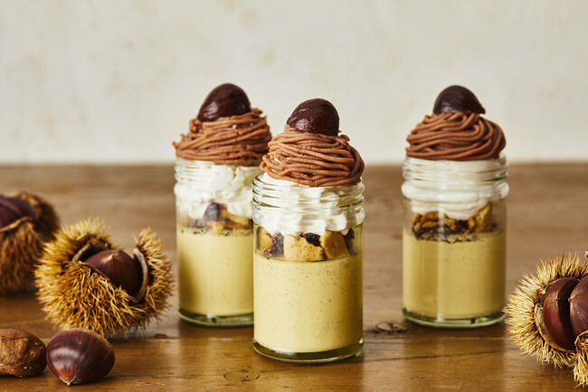 ■濃厚な自家製プリンをヨーロッパ栗のモンブランにアレンジした瓶入りスイーツも登場