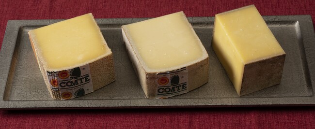 「コンテ」は、フランス東部のジュラ山脈一帯で、1,000年の伝統を守りながら職人が丹精をこめて作っている熟成ハードチーズ。添加物を一切使わないナチュラルな味わいと豊かな風味が魅力で、フランス産AOP(原産地呼称保護)チーズの中で最大の生産量を誇ります。2021年の生産量は約72,300トンで対日輸出量は67トン。フランスでは朝食からおやつ、料理やワインのおつまみにと、子供から大人まで広く親しまれており、日本でもチーズ愛好家の間で大変人気があります。