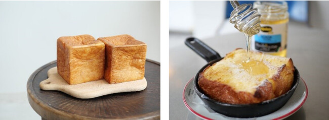 左:1日2,000個完売する『ムー』 右:鉄板フレンチトースト