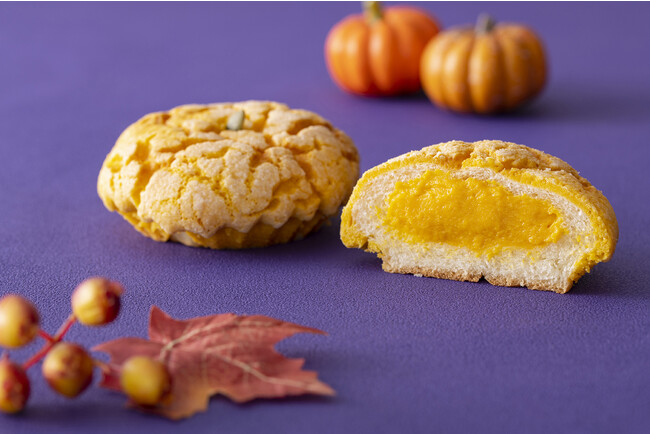 かぼちゃのクッキー生地をのせて焼き上げたパンに、北海道産の有機かぼちゃペーストを合わせたカスタードクリームをたっぷりと絞りました。ほのかに香る生姜の風味がアクセントになった一品です。