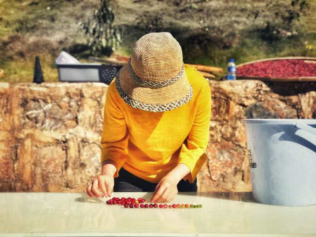 今回入荷した『中国 雲南 天空農園 マイクロロット ナチュラル ダブルファーメンテーション』は、酵母菌と乳酸菌を使用して1次発酵が行われることで、通常生産されている同農園のコーヒーよりもさらに芳醇な味わいと香りが広がるのが特徴です。さらに農園の曾(ソウ)氏がプーアル茶の製法からヒントを得て、70種類以上もの実験ののちに完成させた二次発酵のナチュラルプロセスを採用したことから「ダブルファーメンテーション」と呼ばれる精製を行っています。これにより梅酒やブランデーといったお酒を思わせるフレーバーが誕生しました。
